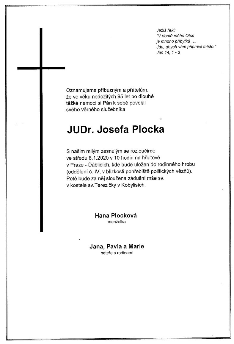 Zemřel JUDr. Josef Plocek
